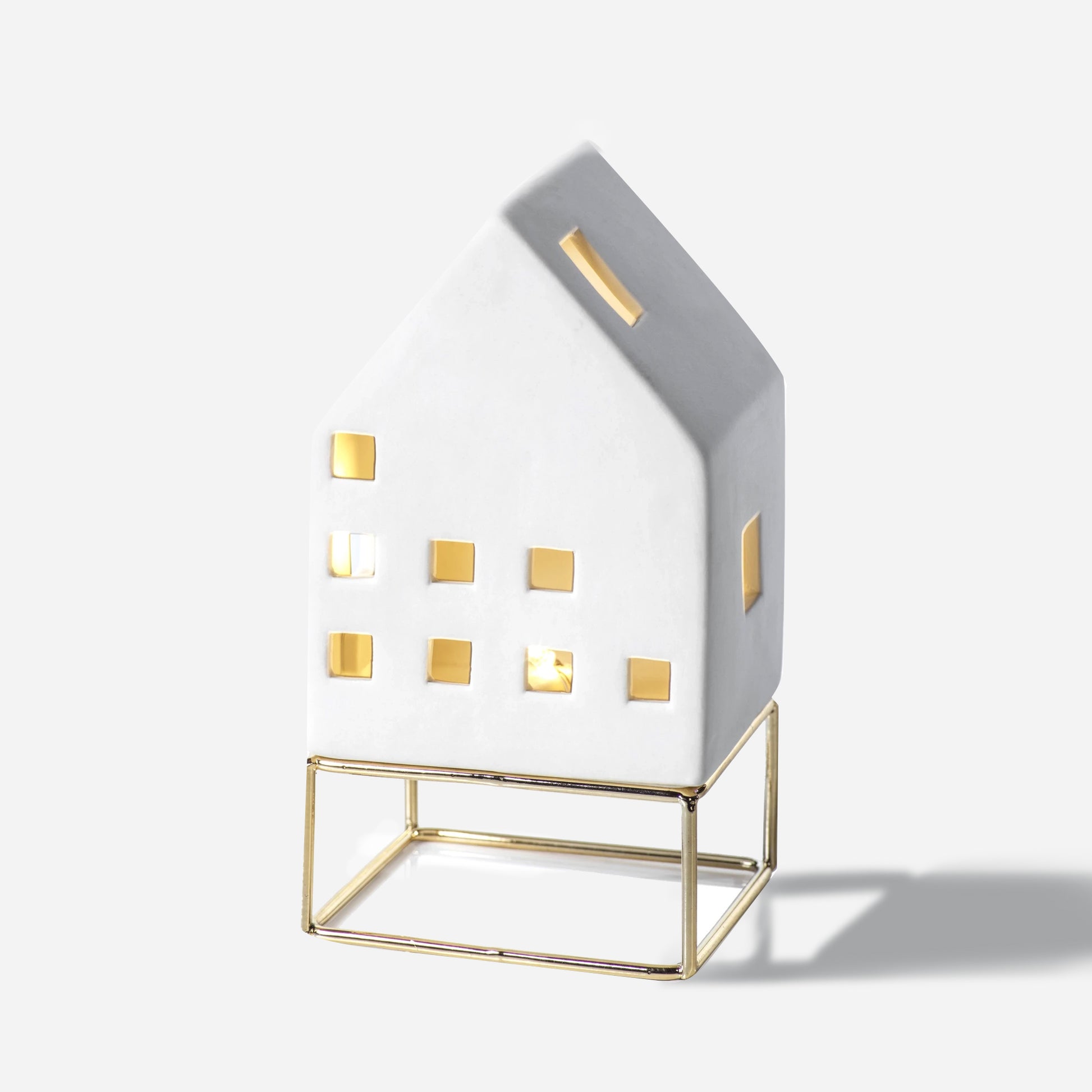 LED Ceramic House on Gold Metal Base