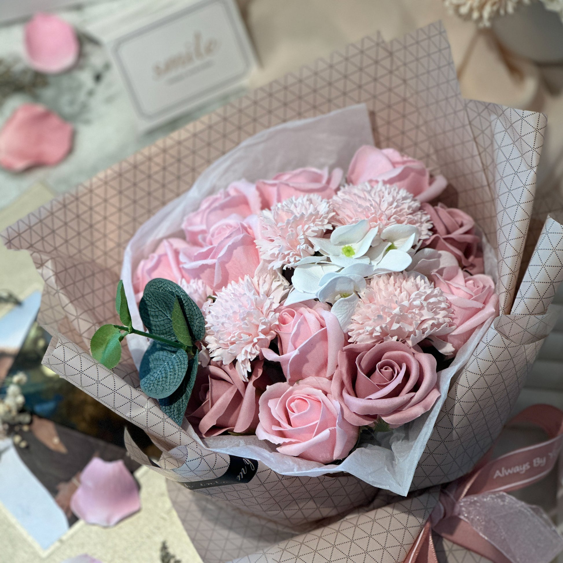 - The flowers are made of great scented soap, not silk. (Although, it is made of soap, it is for decoration only, NOT SUITABLE FOR WASHING)